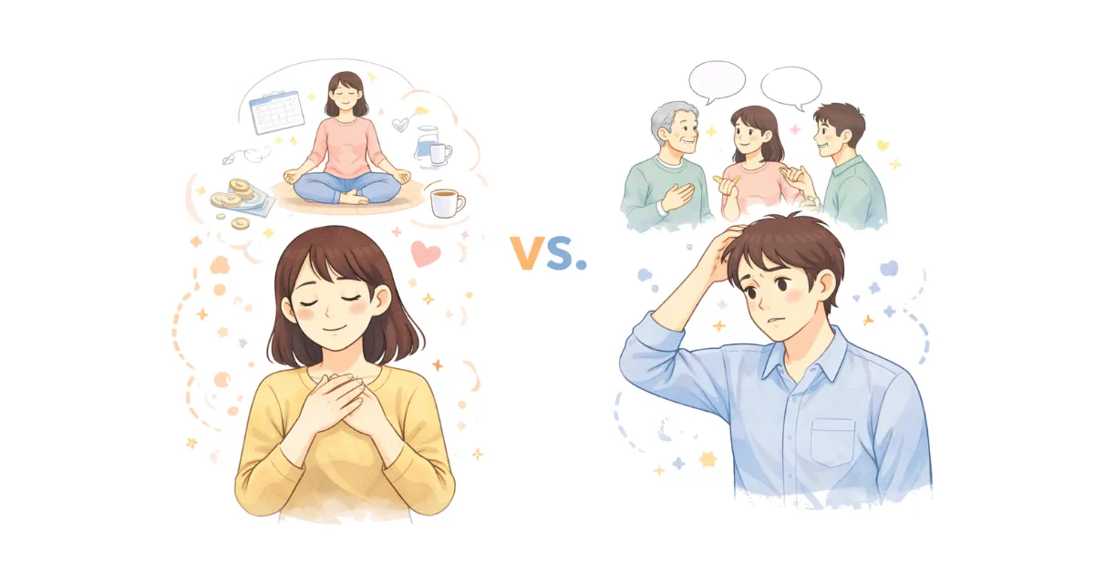この診断では、意思決定のしかた・評価への反応・断る/譲る場面での傾向を整理して、あなたがどんなときに自分軸/他人軸に傾きやすいかをつかみます。